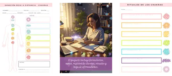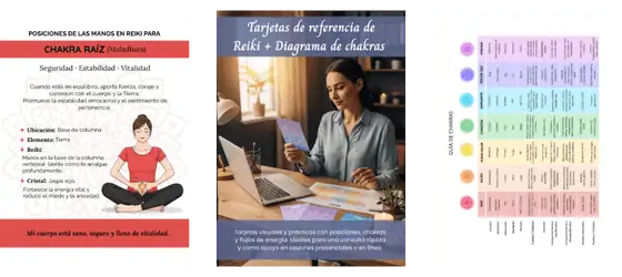 ✓ Tarjetas de Referencia Reiki + Tabla de Chakras $ 27Tarjetas visuales y prácticas con posiciones de las manos, chakras y flujos energéticos. Ideales para consultas rápidas y apoyo en sesiones presenciales u online.
